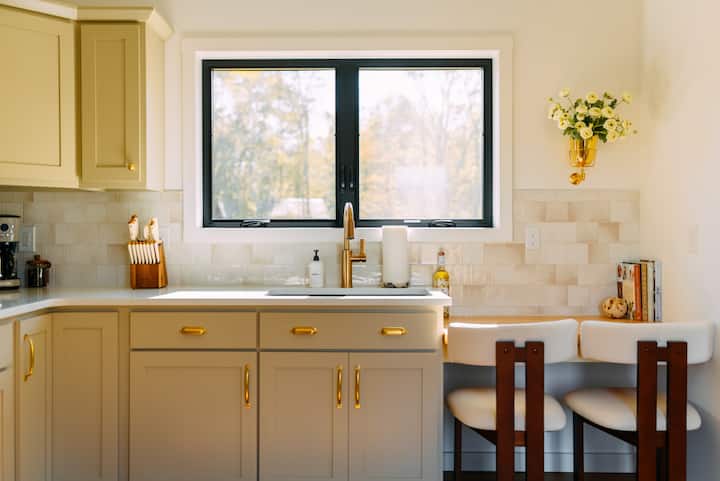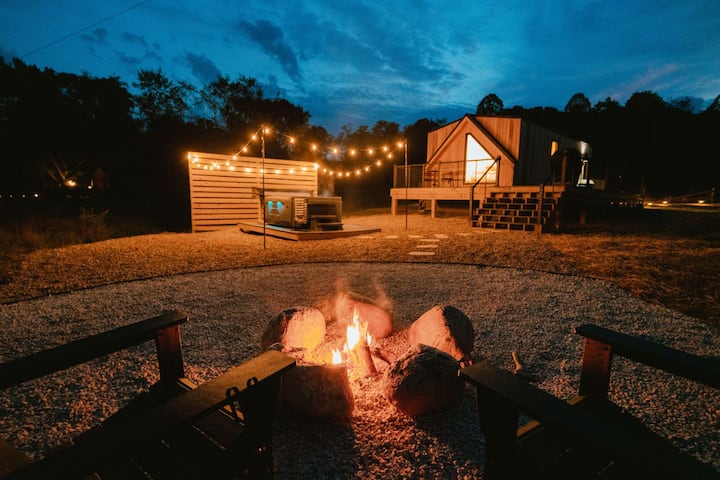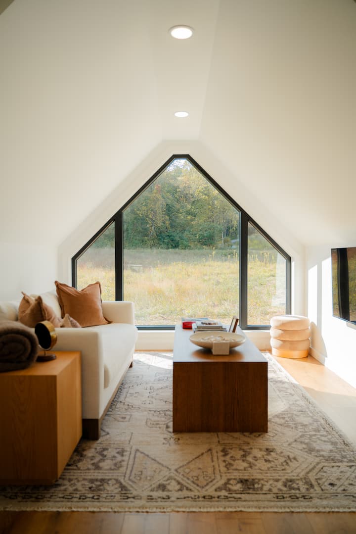 Timber Haus je posebno izgrađen od drva čempresa i profesionalno dizajniran od vrha do dna, omogućujući gostima da dožive jedinstveno iskustvo odmora. Kad uđete u brvnaru, dočekat će vas nevjerojatan prozor od poda do stropa na prednjoj strani brvnare: čeka vas skandinavski planinski luksuz. Everwoods Timber Haus doista je savršena baza za vašu avanturu u Hocking Hillsu! Pogledajte @the.everwoods na IG-u za više fotografija, videozapisa i lokalnih preporuka!