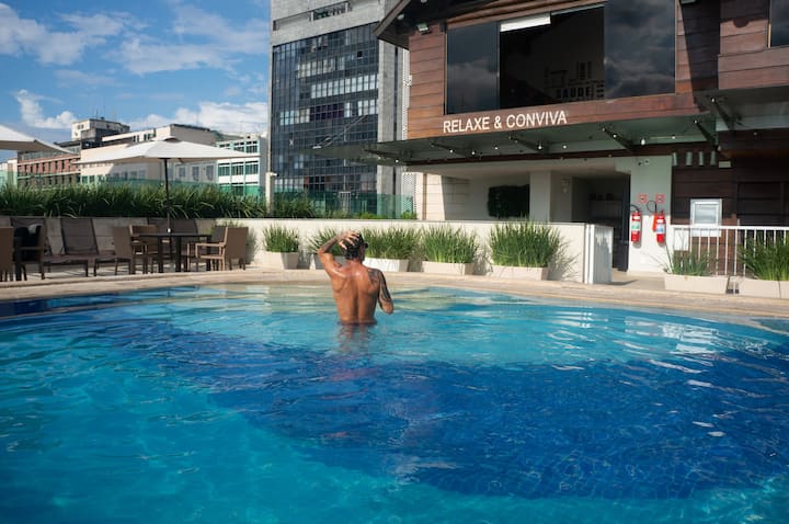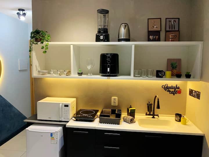 Moderan studio idealan za najviše 2 osobe. Opremljen bračnim krevetom, kuhinjom i besplatnim bežičnim internetom. Nalazi se na 11. katu stana. Mauá Stambena kuća s potpunim opuštanjem: krov s bazenom, gurmanski prostor, teretana i prekrasan pogled na grad. Salon, prostor za rad, igraonica i praonica rublja. Strateška lokacija u centru: manje od 10 minuta hoda od tramvajske/muzejne stanice São Bento i podzemne željeznice Uruguaiana/ Presidente Vargas i 15 minuta Uberom do plaže Copacabana.