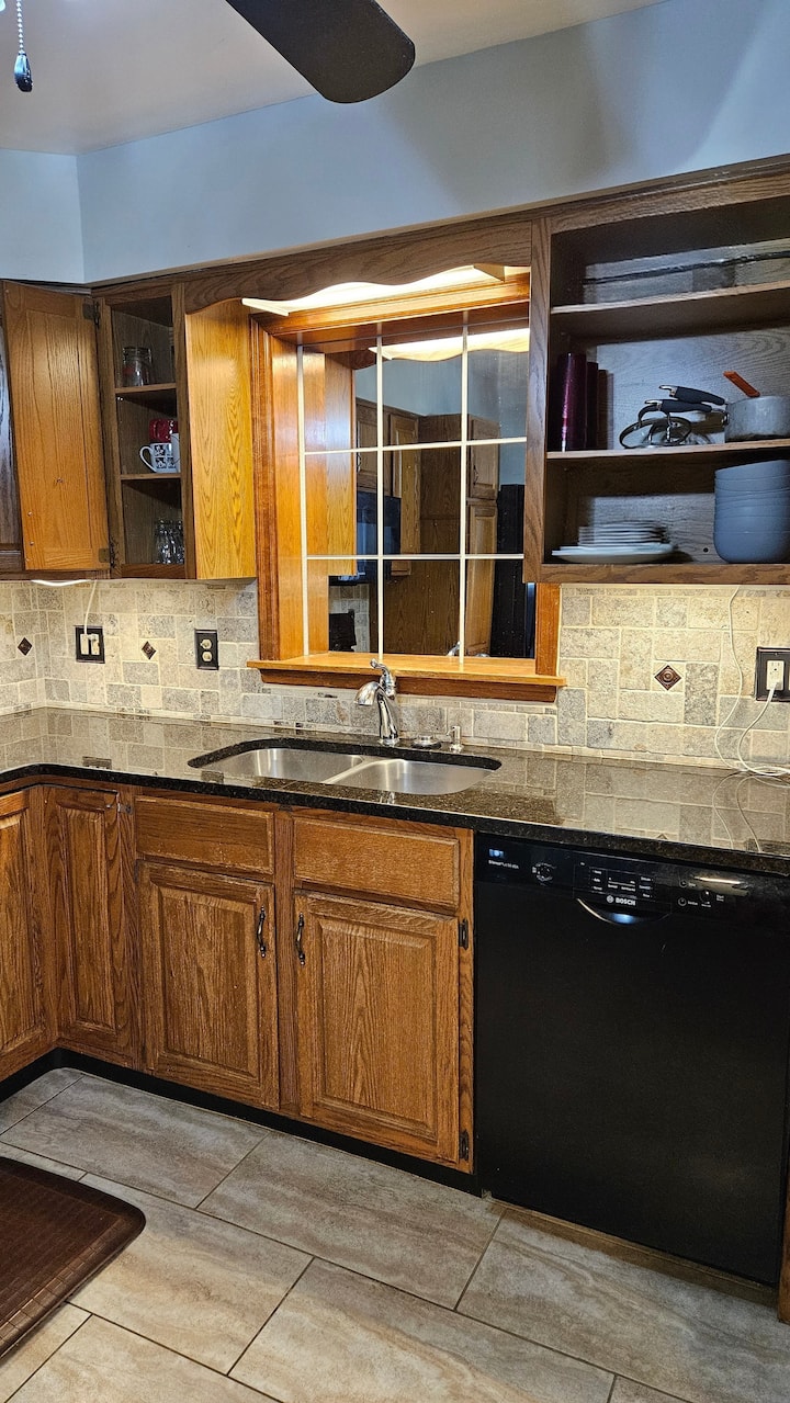 U kuhinji ćete pronaći sljedeće sadržaje: plinski štednjak, toster, ledomat ugrađen u zamrzivač, ručnike, krpe za posuđe, deterdžent za pranje posuđa, deterdžent za perilicu posuđa, nekoliko lonaca i tava, barem jedan lim za pečenje, pribor za pečenje, razne čaše i tanjure, zdjele i pribor za jelo za četveročlanu obitelj za objedovanje za stolom. Na zahtjev možemo osigurati dodatna 4 mjesta za sjedenje, no možda ćete morati imati jednokratno posuđe ako je grupa veća. U kuhinji često ima i drugih stvari, no to su stvari koje će biti prisutne i funkcionalne kad stignete (ili brzo riješene ako nisu).
