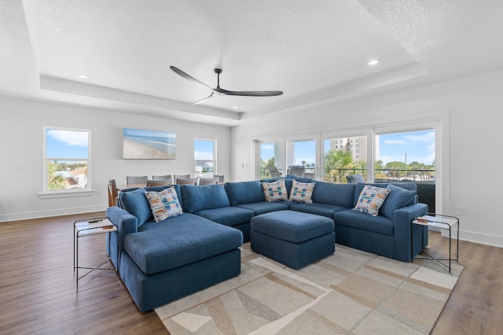 Dobro došli u luksuzni smještaj na plaži! Ovaj potpuno novi, izdignuti trokatni smještaj na obali koji prima kućne ljubimce udaljen je samo 400 koraka od pješčane plaže i pažljivo je dizajniran s dvije identične, potpuno opremljene strane, što ga čini savršenim za velike grupe, više obitelji ili odmor za više generacija. Svaka strana ima 4 prostrane spavaće sobe, posebnu sobu s dva kreveta na kat i privatni studio apartman s velikim bračnim krevetom, čajnom kuhinjom, kaučem na razvlačenje, kupaonicom s WC-om i vlastitom praonicom rublja. Tako svaka strana ima 5 spavaćih soba, prostor s krevetima na kat, 4 kupaonice s WC-om, 2 WC-a i 2 praonice rublja. Ukupno u smještaju ima 10 spavaćih prostora, 2 kreveta na kat, 8 kupaonica s WC-om, 4 WC-a, 4 praonice rublja, a može udobno primiti do 36 gostiju, a uz 2 dodatna madraca za jednu osobu može primiti i više gostiju (ukupno 38). Na trećem katu, na svakoj strani, nalazi se gurmanska kuhinja s vrhunskim aparatima, stol za blagovanje za 8 osoba, otok za sjedenje za 6 osoba, obiteljska soba s 2 velika pametna televizora, glavni apartman s velikim bračnim krevetom i kupaonicom u stilu spa-centra te ogromni ormar, WC, namjenski radni prostor i prostrani balkon s mnoštvom sjedalica. Vrata na trećem katu povezuju obje strane, omogućujući gostima privatnost kada je to potrebno i jednostavan pristup kada se okupljaju. Na drugom katu svake strane nalaze se 3 dodatne spavaće sobe (jedna s izlazom na balkon), soba s krevetima na kat, 2 kupaonice, dnevni boravak s pametnim televizorom, veliki namješteni balkon i praonica rublja. Na prvom katu nalazi se privatni studio apartman na svakoj strani, zajedno s ulaznim hodnicima, WC-ima, pristupom dizalu, vanjskim tuševima, plinskim roštiljima i spremištem za opremu za plažu. Za zabavu postoji ukupno 20 pametnih televizora – po jedan u svakoj spavaćoj sobi, svakoj sobi s krevetima na kat, svakom dnevnom boravku i po 2 u svakoj obiteljskoj sobi. Uz brzi Wi-Fi, prostrani ormar, četiri velika balkona i fleksibilne rasporede spavanja, ovo luksuzno utočište nudi idealno okruženje za okupljanja, odmore ili bilo koji odmor za velike grupe, a udaljeno je samo nekoliko koraka od Atlantika.