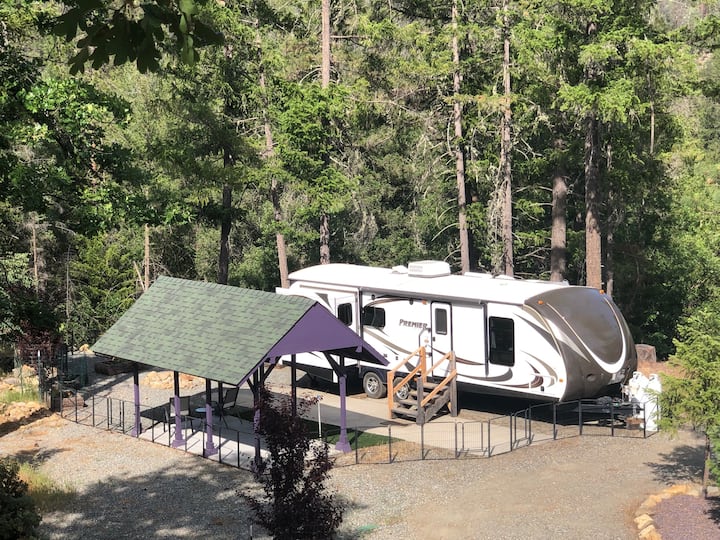 Prostrana prikolica za kampiranje od 30' na osamljenoj lokaciji.