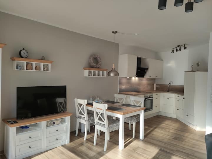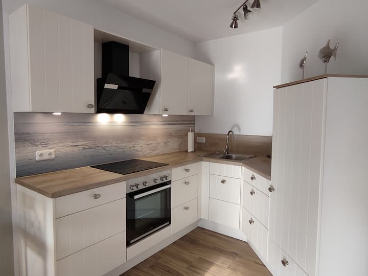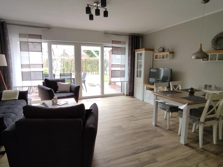 Naša kuća za odmor moderna je i uređena u pomorskom stilu. U njemu mogu spavati 4 osobe na 2 kata s 2 spavaće sobe. Potpuno opremljena kuhinja, blagovaonica i dnevni boravak s kaminom osiguravaju opuštene dane. Opremljen je podnim grijanjem u prizemlju. Natkrivena terasa poziva vas na ugodne večeri. Garaža s parkirnim mjestom ispred nje nudi udobnu zaštitu za vaš automobil. Idealno za opuštajuće dane uz more.