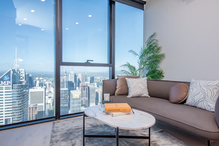 Doživite Melbourne s još veće visine u oblacima!Smješten na 73. katu kultnog "Beyoncé Towera" (Premier Tower), ovaj povišeni smještaj pruža prekrasan pogled na gradsku panoramu od poda do stropa s jedne od najviših stambenih etaža u središnjem poslovnom dijelu grada.
