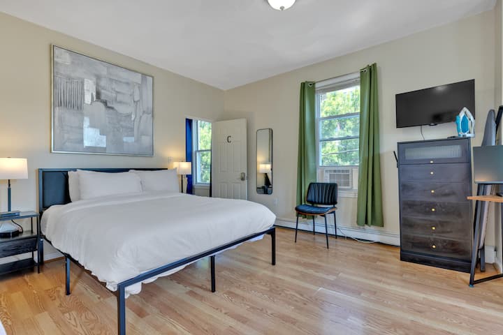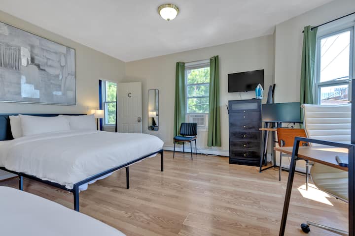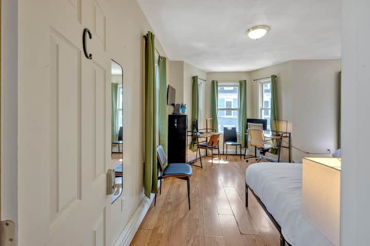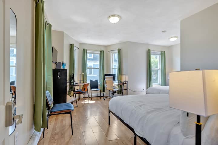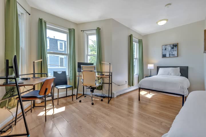 Velika soba, 2 kreveta, 2 radna stola, MIT i javni prijevoz u blizini