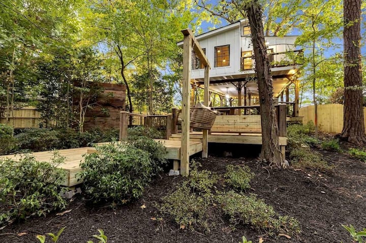 Ova luksuzna ružičasta kuća na stablu smještena je na visini od 7,6 metara u stablu hrasta starom nekoliko stoljeća i jedinstveno je romantično mjesto za odmor. Rustikalne 250 godina stare grede susreću se s modernim udobnostima – klima-uređajem, grijanjem, Wi-Fi mrežom i ekološki prihvatljivim WC-om. Gledajte kroz ogromne prozore u bujne vrtove, uživajte u privatnoj masažnoj kadi (dodatak) pod zvijezdama i opustite se uz vatru u svom skrivenom, ograđenom dvorištu. Okružuje vas priroda, a najpoznatije znamenitosti Atlante udaljene su svega nekoliko minuta. Miran smještaj za dvoje.