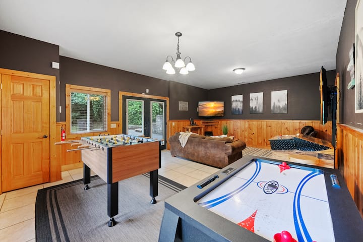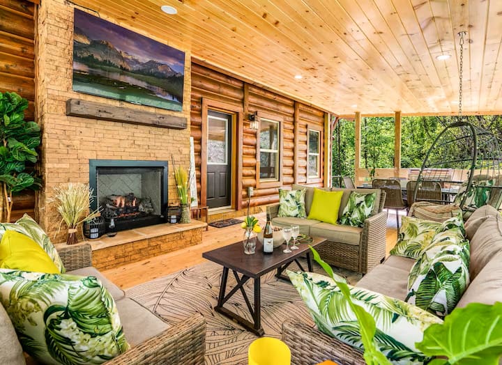 ♨️ Masažna kada | 🎮 🔥 Igraonica | Kamin | Privatne terase | Vanjski igralište | 4BR Retreat