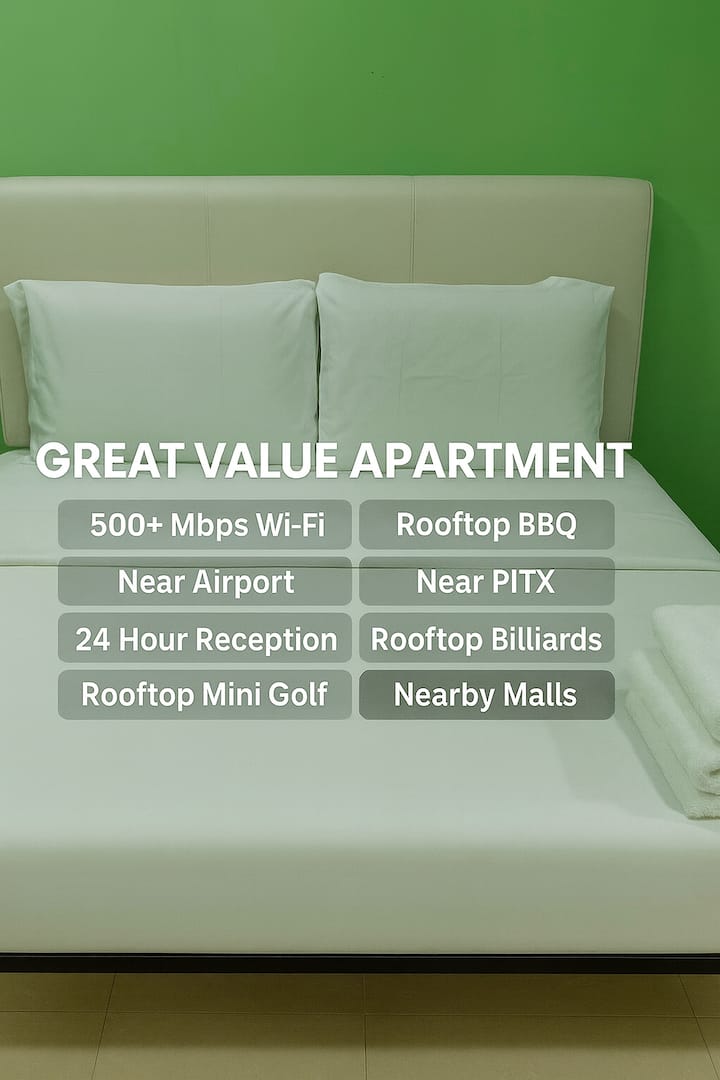 Samostalna zgrada s oko 50 soba za goste, smještena vrlo blizu terminala zračne luke Manila. Okružen je zrakoplovnim spavaonicama i autobusnim parkiralištem zračne luke, nudi veliku praktičnost. Objekt ima privatno dvorište i uslugu batlera 0 – 24, a brzina interneta je preko 500 Mbps. U sadržaje spadaju bilijarski stol na krovu, kavez za golf, prostor za roštilj i mala teretana. Sobe su u potpunosti opremljene kavom, sušilom za kosu, bojlerom, čajnikom, toaletnim potrepštinama, a na raspolaganju su i zajednička kuhinja i praonica rublja.