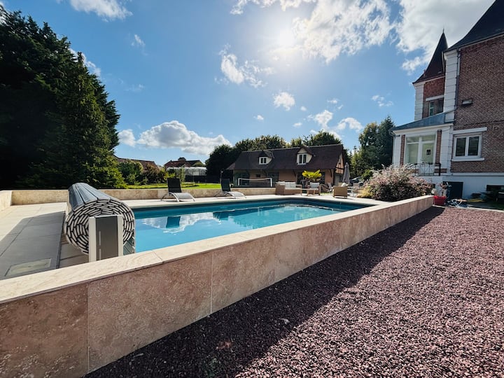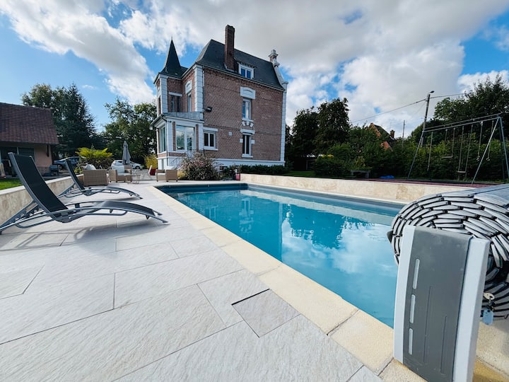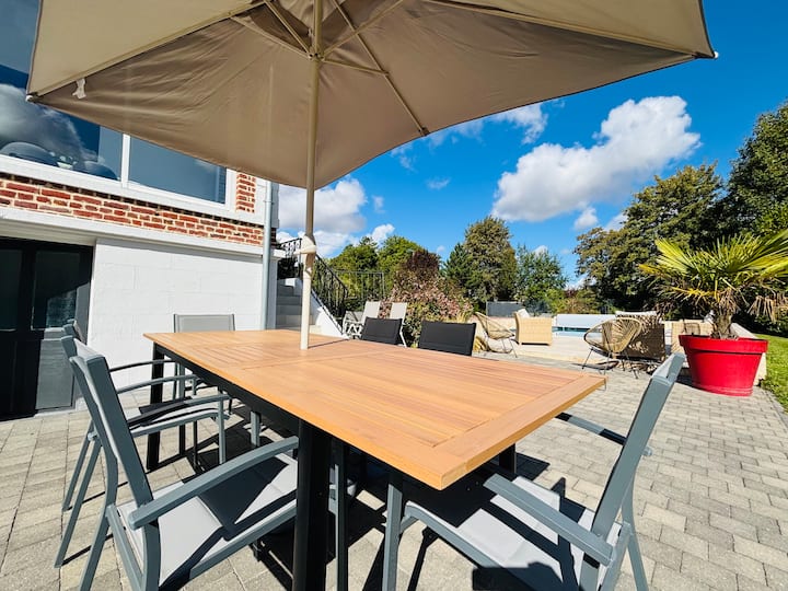 Uživajte u iznimnom boravku u srcu Pikardije! 5 spavaćih soba, 3 kupaonice + svlačionica uz bazen s tušem, 2 dnevna boravka. Grijani bazen, teretana, igraonica (bilijar, stolni nogomet), vrt s plinskim roštiljem. Slobodno vrijeme za sve: PS5, stolni tenis, petanque… Savršen odmor s obitelji ili prijateljima!