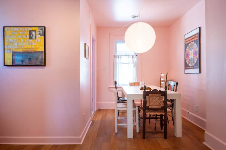 Lake Effect Club najkreativniji je smještaj u Milwaukeeju — 150 godina stara zgrada preuređena je odvažnim bojama, dizajnerskim vintage predmetima i novim udobnostima. ✦ Smješten u jednoj od najživopisnijih gradskih četvrti, to je kratkoročni najam koji dokazuje da je Milwaukee jednako cool kao i jezero na kojem se nalazi.
