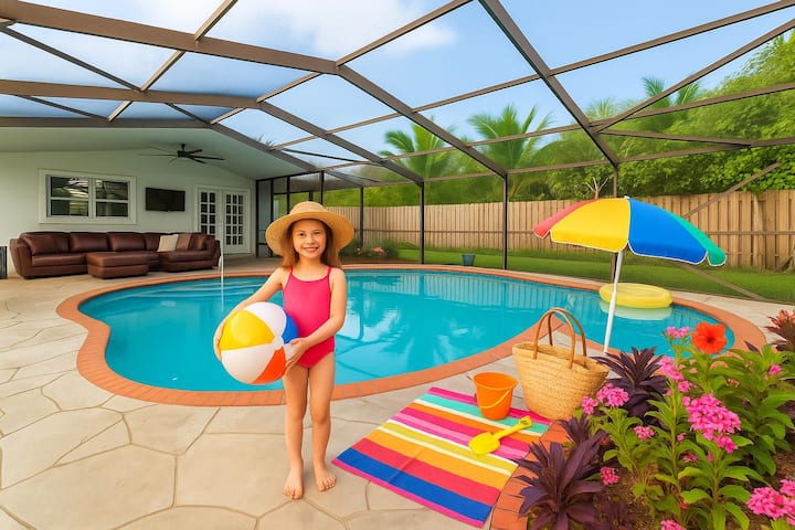 Izađite u privatno dvorište s blistavim bazenom 💦 i udobnim garniturama za sjedenje, savršenim za opuštanje, uživanje u jutarnjoj kavi ☕ ili stvaranje uspomena s obitelji i prijateljima. U vanjskom prostoru nalazi se i roštilj 🔥 i TV 📺 za opuštene večere i večernju zabavu pod nebesima Floride.