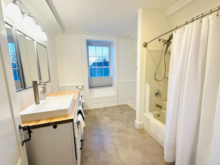 THE HALE LOFT – nedavno renoviran apartman u zgradi Liberty Emery House smještenoj u samom središtu Exetera, odmah pored privatne škole Phillips Exeter Academy (PEA). Kuhinja je od granita/kamena i ima plinski štednjak, hladnjak s ledomatom i stol za 6 osoba. Privatna kupaonica ima perilicu i sušilicu rublja, WC s bideom Toto i kadu s tušem. Hale Loft ima četiri prozora od 200 cm i originalne široke borove podove iz 1750-ih te kamin. 50-inčni TV u okviru. Rezervirajte već danas!