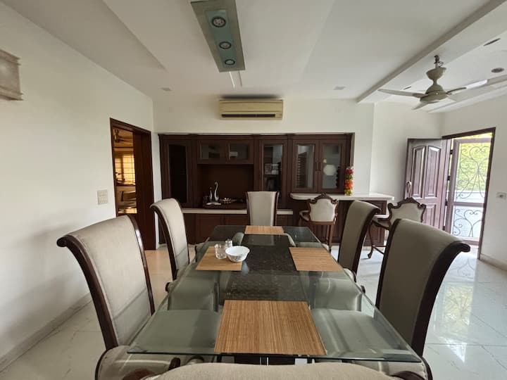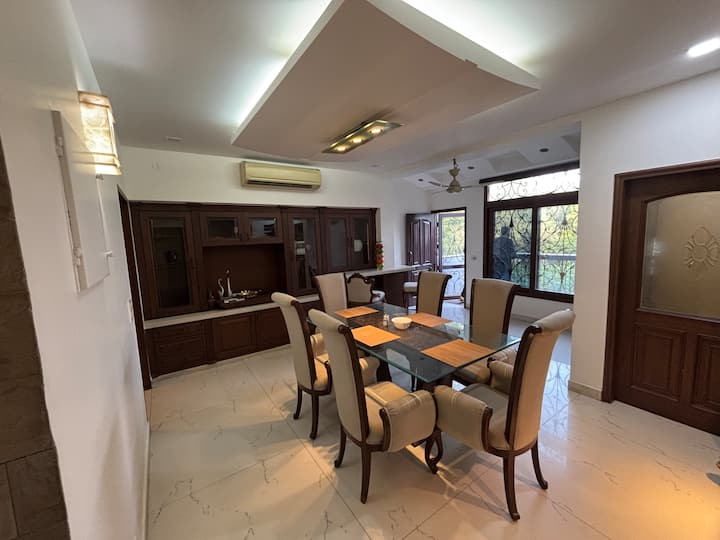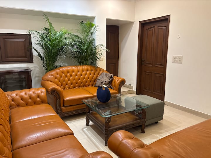 Luxe s punim uslugama airbnb smješten u srcu Delhija — D-7 Vasant Kunj, mirna i ograđena enklava s drvoredima s dovoljno mjesta za parkiranje, lutajućim paunovima i živahnom atmosferom. Smješten u središtu grada s jednostavnim pristupom cijelom NCR-u u Delhiju, to je savršen smještaj bez obzira na to putujete li poslovno ili rekreacijsko.