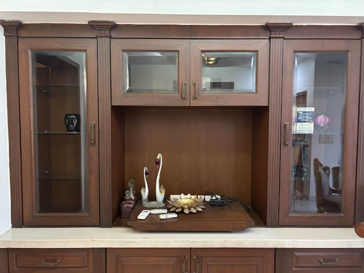 🍲 Potpuno opremljena kuhinja: potpuno opremljena za pripremu indijskih ili međunarodnih jela - sve, od štednjaka i mikrovalne pećnice do hladnjaka, blendera, pa čak i aparata za filter kavu i francuske preše. Ugrađen je RO filtar za vodu. Ostava je opremljena osnovnom opremom (začini, ulje za kuhanje, šećer, čaj, kava).