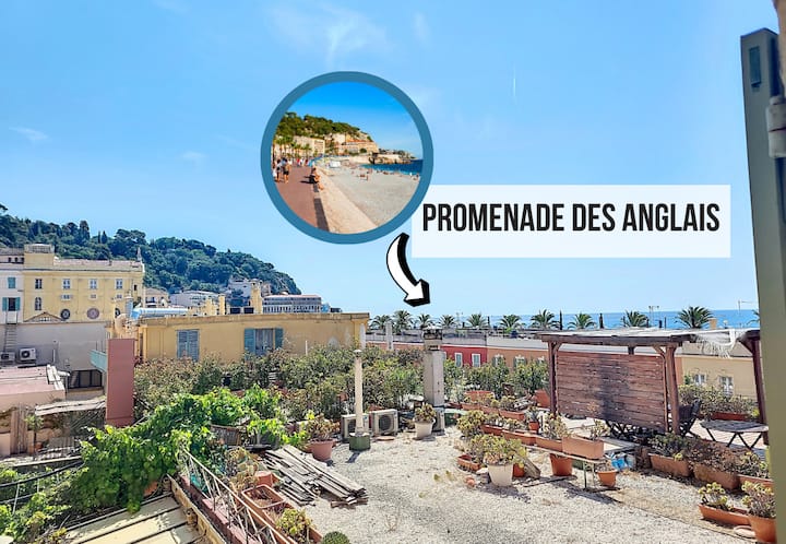 Uživajte u neometanom pogledu na arhitekturu Vieux Nice, s morem i palmama u pozadini.