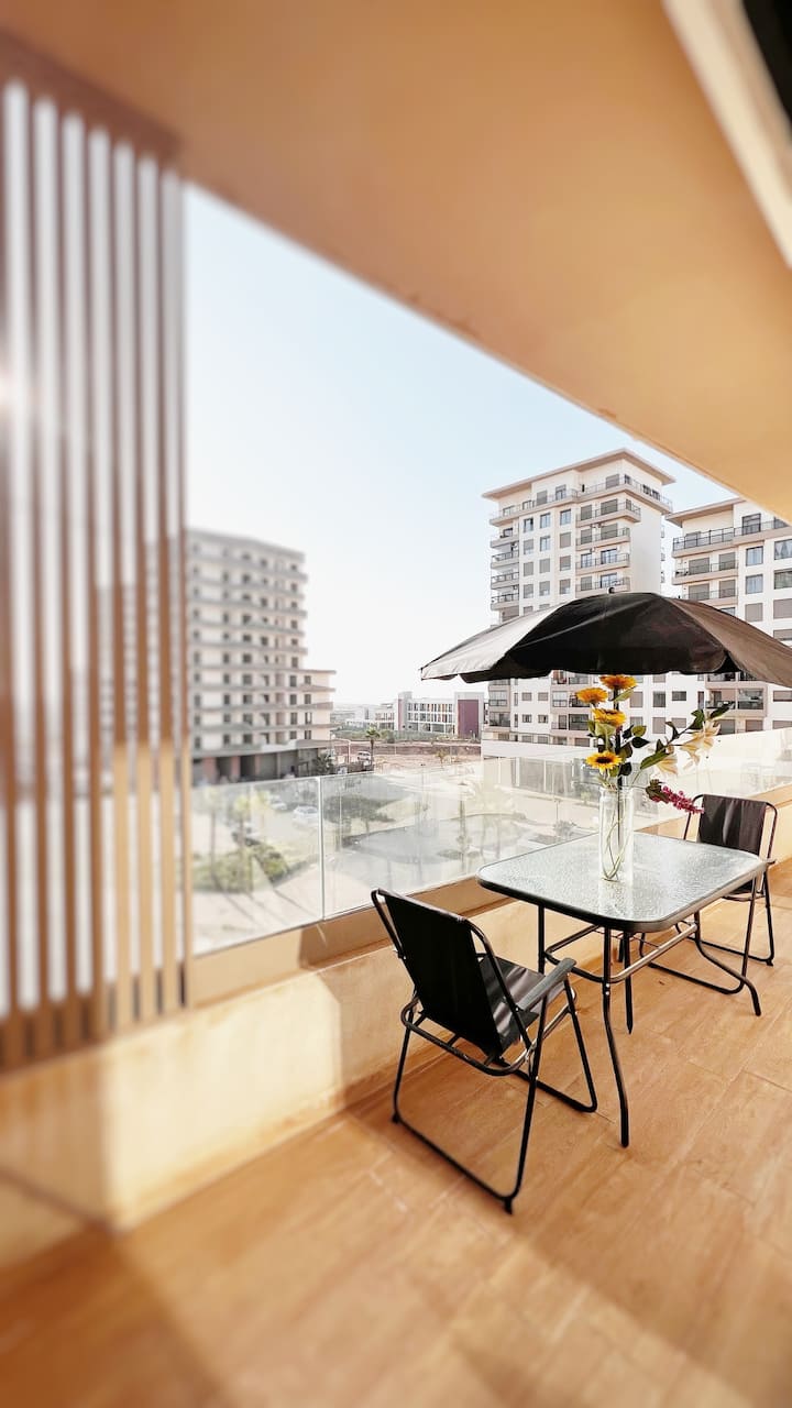 Svijetli 1BR | Balkon, bazen i pogled na vrt