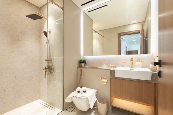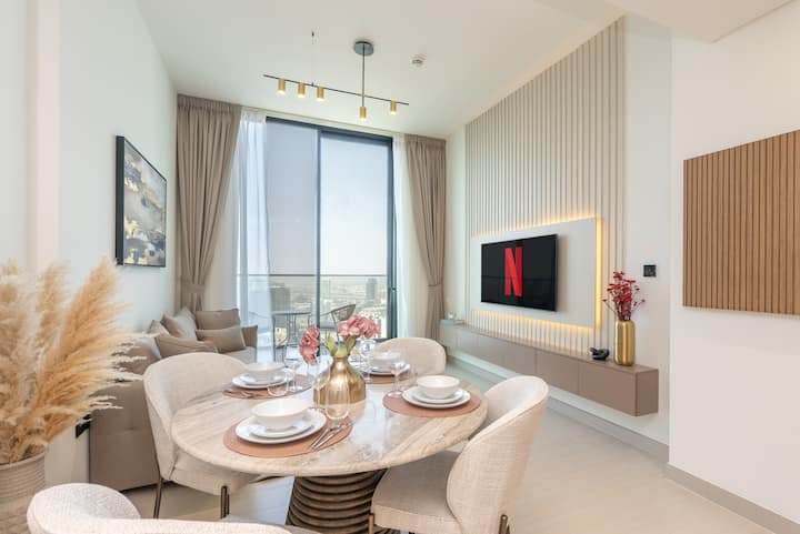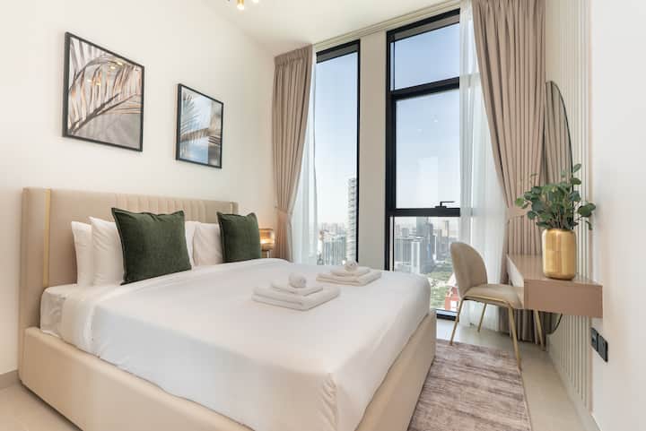 Luksuzan smještaj na visokom katu s 1 spavaćom sobom | pristup bazenu i teretani