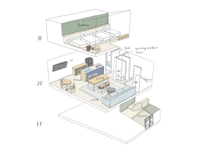 Ovo je izvanredan privatni hotel ispunjen željom domaćina da stvori opuštajući prostor za putovanja cijele obitelji.Dok se igraju u velikom dnevnom boravku u kojem djeca mogu biti bezbrižna, njihovi su roditelji obraćali pozornost na stvaranje prostora u kojem bi se mogli opustiti poput dnevnog boravka u kući.