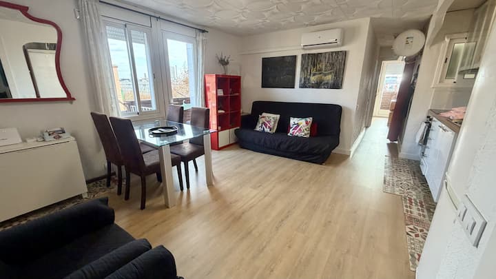 Prostrani dragulj uz plažu s 2 spavaće sobe u Diagonal Mar (Besós Mar L4), Barcelona. Elegantan dizajnerski stan od 70 m² udaljen samo 10 min hoda od plaže Forum. 6 osoba (2 spavaće sobe + kauč), s besplatnim Wi-Fi-jem, pogledom na terasu, klima-uređajem u svakoj sobi i brzim samostalnim dolaskom na mirnoj lokaciji. 1,5 kupaonica.