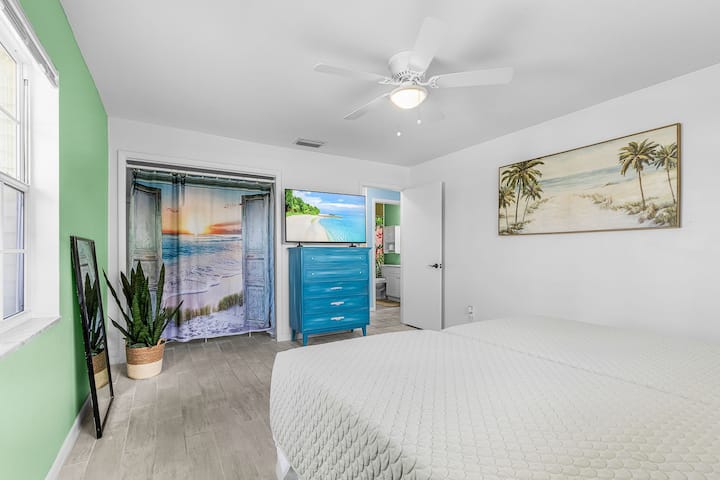 Zakoračite u vlastitu oazu u dvorištu: grijani bazen s pogledom na kanal, gdje morske krave i dupini povremeno svrate u posjet. Izazovite prijatelje i obitelj na zelenom terenu za golf prilagođenom vašim željama – usavršite svoju igru bez napuštanja kuće. Dva kajaka koja se nalaze na doku pozivaju vas da se opustite i istražite vodene površine koje se presijavaju na suncu. Dva bicikla (od kojih je jedan tricikl) čekaju u garaži da istražite područje bez automobila. Svaka soba ima klima-uređaj i besplatan Wi-Fi.
