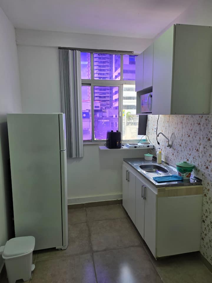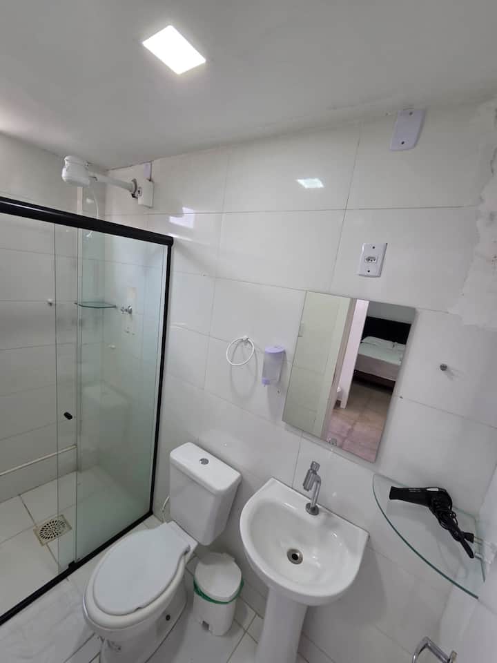 Moderan i funkcionalan studio apartman s integriranim okruženjem. Ima prostranu spavaću sobu s bračnim krevetom, ormarom, prirodnim osvjetljenjem i klima-uređajem. Dnevni boravak opremljen kaučem, TV-om i udobnom foteljom. Kompaktna kuhinja sa štednjakom, hladnjakom, mikrovalnom pećnicom i sudoperom – savršena za pripremu obroka. Kupaonica s tušem, umivaonikom i ogledalom. Keramički pod koji se lako čisti, odgovarajuća rasvjeta u svim prostorijama i prozori koji osiguravaju osvjetljenje. Udoban, čist i dobro organiziran smještaj za ugodan boravak u Belému.