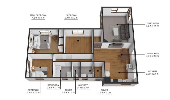 - 3 spavaće sobe