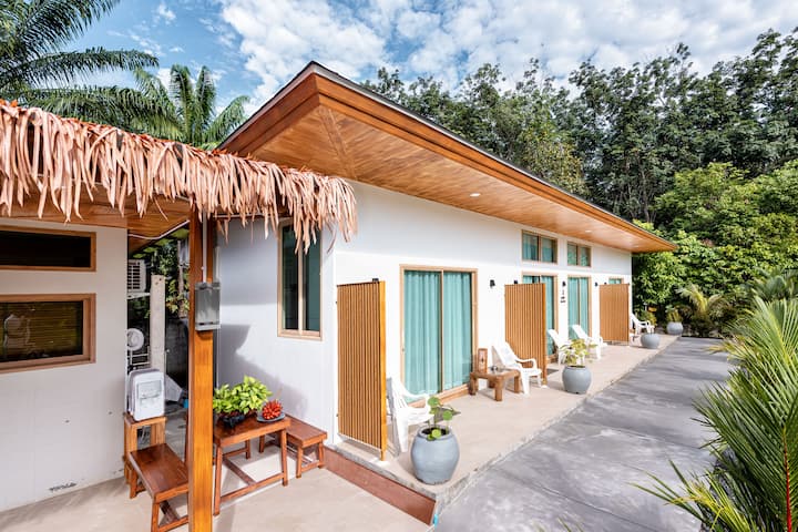 Vaše privatno i mirno utočište u Aonang Krabiju s prijateljskom uslugom, sadržajima i jednostavnim pristupom plaži Aonang, okolnim otocima i opcijama za različite jednodnevne izlete. Uživajte u opuštenom danu sa svojom obitelji i prijateljima na našem bazenu neposredno ispred vašeg smještaja ili se odlučite za otkrivanje prekrasnih i poznatih destinacija u Krabiju.