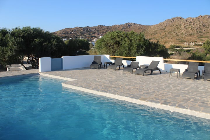 Vila se nalazi u Mikri Vigli, na zapadnoj obali otoka i oko 18 km od glavnog grada Chore.
