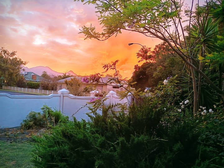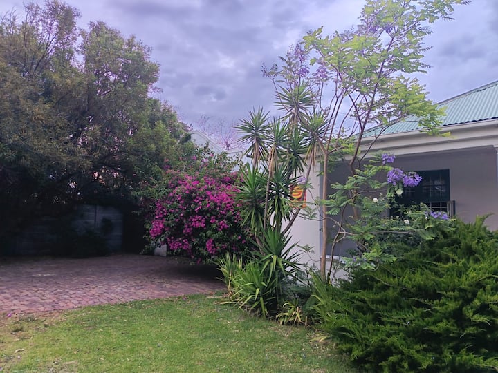 Udaljen je svega nekoliko minuta od starog središta sela, no čim zakoračite u stražnji vrt, osjećat ćete se kao da ste na mirnom seoskom imanju. Stara hrastova stabla, očuvano staro deblo, mali povrtnjak i svakodnevni posjeti razigranih vjeverica stvaraju osjećaj smirenosti i povezanosti s prirodom. S pogledom na planine Hottentots Holland, okruženje je jednako lijepo kao i spokojno.