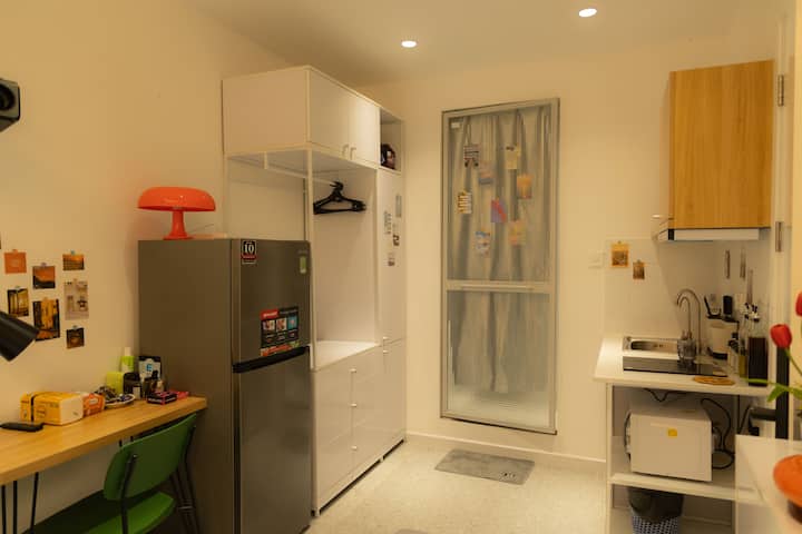 Udoban studio u samom srcu Okruga 1, minimalističkog dizajna, ali potpuno namješten: privatna kuhinja, radni stol, projektor i bojler s toplom i hladnom vodom. Fleksibilan dolazak u smještaj u bilo koje doba dana ili noći. Besplatna perilica i sušilica na krovnoj terasi. Nalazi se u blizini ulice Bui Vien, tržnice Ben Thanh i drugih atrakcija. U istoj zgradi nalaze se još 2 garsonijere s dizalom, pogodne za grupe prijatelja, parove ili poslovne putnike. Ako vam trebaju dvije kuće koje su blizu jedna drugoj, obratite nam se kako bismo to dogovorili.