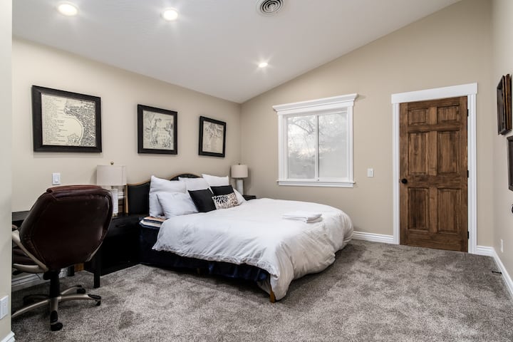 Boravak na otvorenom: uživajte u objedovanju i zabavi na otvorenom u našem potpuno opremljenom vanjskom prostoru s roštiljem, pećnicom na pelete, blagovaonicom i udobnim sjedalima. Smješten tik uz park u susjedstvu s blagim brdom za sanjkanje (saonicama koje su na raspolaganju gostima!). Nekoliko parkova za jutarnje trčanje ili večernje šetnje nalazi se na pješačkoj udaljenosti.