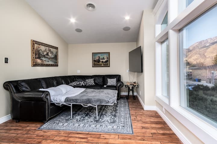 Doživite vrhunski skijaški odmor u našem predivnom planinskom domu sa 6 spavaćih soba, vanjskom hidromasažnom kadom i zapanjujućim pogledom na planine Wasatch. Smještena na savršenoj lokaciji između kanjona Big i Little Cottonwood, udaljena je 20 minuta od skijališta svjetske klase (Snowbird, Alta, Solitude, Brighton). Vrhunska posteljina, velika kuhinja, bilijarski stol, prostor za rad na daljinu i svi sadržaji koje očekujete u odmaralištu. Savršeno za nositelje Ikon Passa koji traže luksuz, dovoljno prostora i praktičnost u mirnoj slijepoj ulici