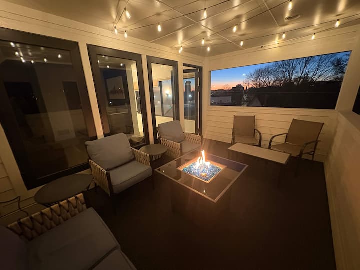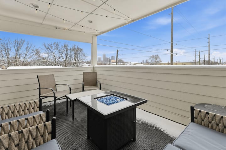 Potpuno novi smještaj s 4 spavaće sobe na Fountain Squareu, nekoliko minuta od centra Indyja. Ima 3 kupaonice, 2 WC-a, dva moderna dnevna boravka i salon u suterenu s 75-inčnim televizorom i pikado pločom. Uživajte u terasi na 3. katu s pogledom na grad, barom i hladnjakom za piće. Potpuno opremljena moderna kuhinja s 10 sjedećih mjesta. Moderno, svijetlo i savršeno za grupe. Trebate više prostora? Iznajmite kuću za goste i dobit ćete dodatnu spavaću sobu za više od 2 gosta.