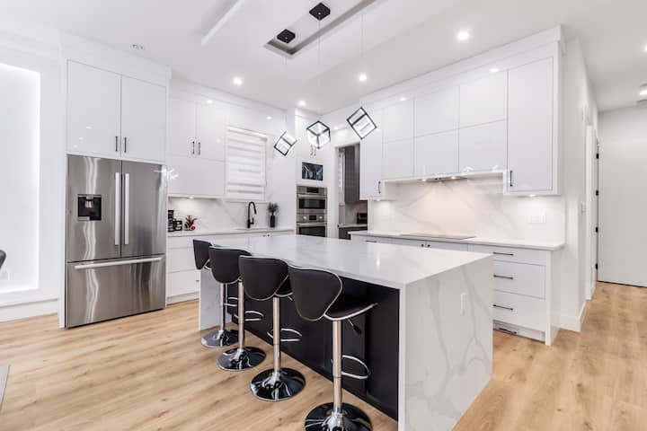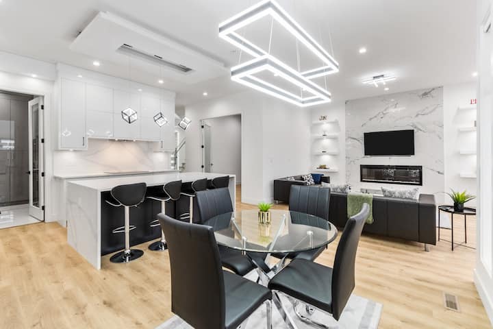 ❤️ Boravite u ovom luksuznom, elegantnom smještaju i ponovno se povežite sa svojim najmilijima u mirnom okruženju s pogledom na zelenu površinu iza kuće – nema susjeda iza. S gotovo 3000 četvornih stopa prostora uređenog u poslovnom stilu i parnim tušem, ovaj je smještaj savršen za obitelji i poslovne putnike koji traže duži boravak i zabavu. Smješten u blizini kongresnog centra Langley, udaljen je samo 30 minuta vožnje od granice sa SAD-om, zračnih luka Vancouver i Abbotsford, kao i centra Vancouvera, trajektnih terminala i svih atrakcija.
