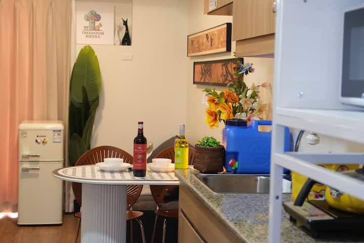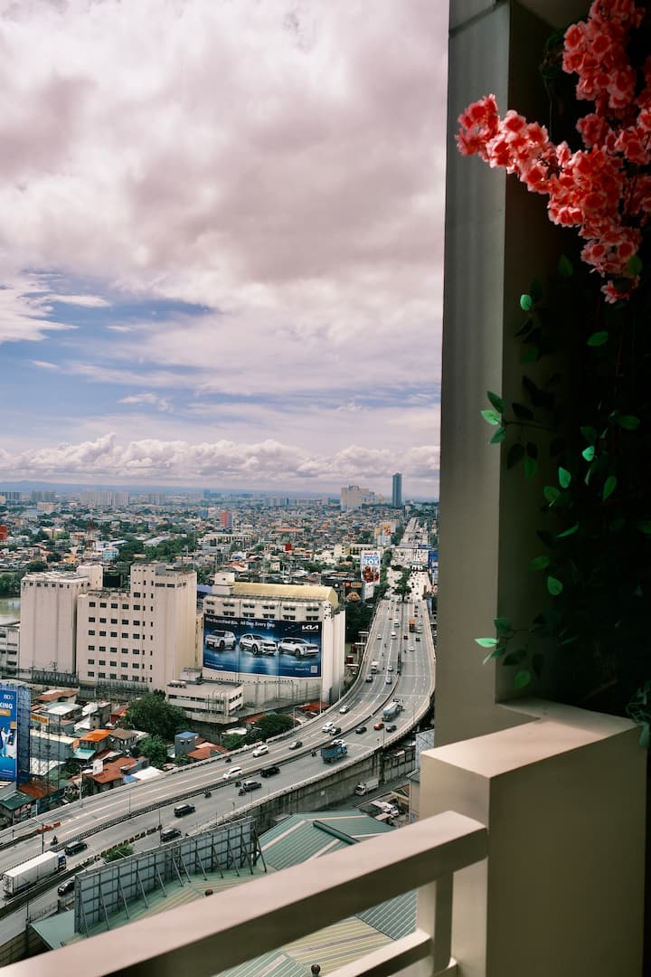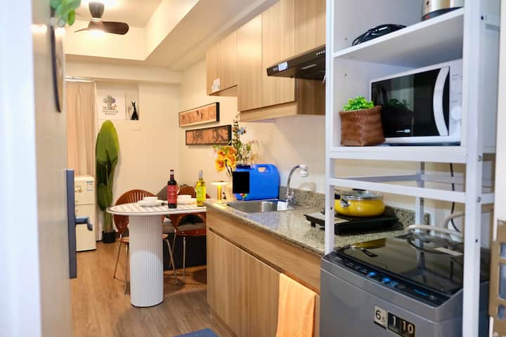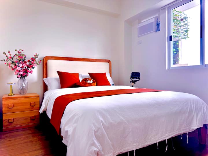 Savršeno topao 1BR kondominij s prostranim balkonom i spavaćom sobom, sa zadivljujućim pogledom na planine i jezero. Airbnb u hotelskom stilu s visokokvalitetnim krevetima od masivnog drva, pamučnim madracem i čistom pamučnom posteljinom. Opremljen 55-inčnim TV-om za kućno kino. Gosti mogu uživati u toplini doma i udobnosti hotela uz savršen audiovizualni užitak. Odličan je izbor za opuštanje na odmoru i poslovna putovanja. U blizini su C5, BGC, Ortigas i Capitol Commons, gurmanski restorani i tržnica u blizini.