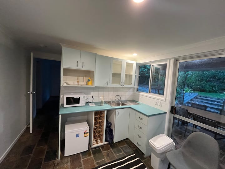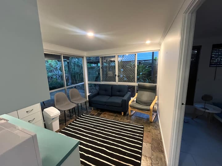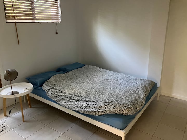 Donja etaža u kući u Queenslandu, dva kreveta, jedan tuš.
