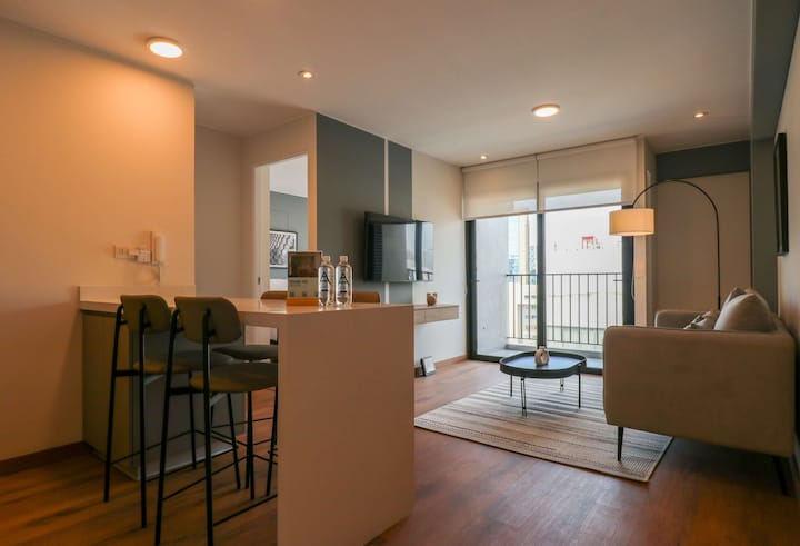 w* | Svijetli dvosobni stan s balkonom u Mirafloresu