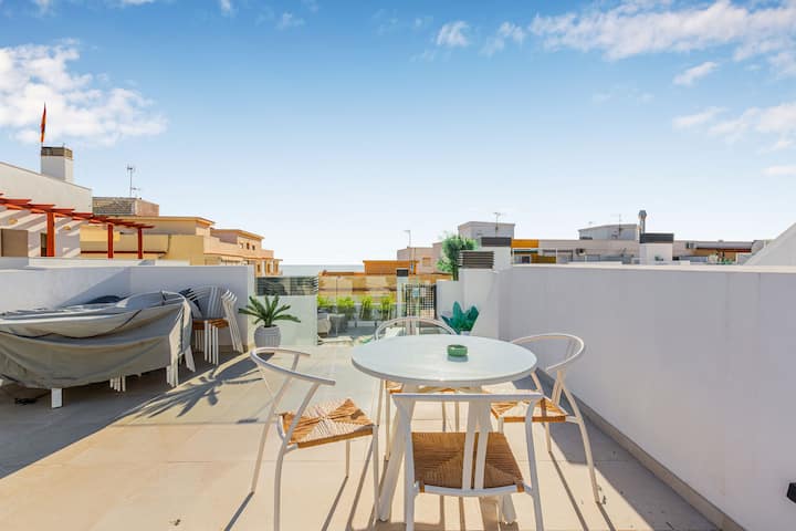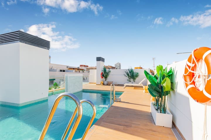 Gosti mogu uživati u prekrasnom vanjskom prostoru na krovu, idealnom mjestu za objedovanje pod zvijezdama, uživanje u večernjim obrocima ili opuštanje u toploj klimi Estepona. To je prekrasan prostor za opuštanje i uživanje u mediteranskom načinu života.