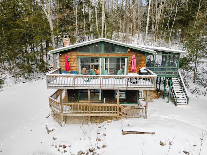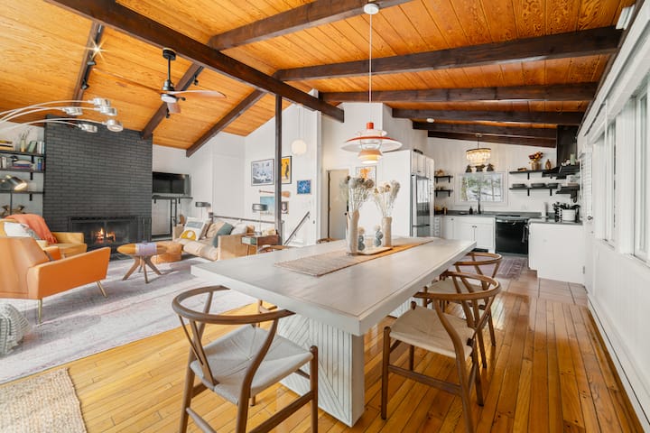 Novo uređena prekrasna kuća u retro stilu uz jezero s modernim uređenjem iz sredine prošlog stoljeća u mirnom Berkshiresu uz jezero Goose Pond! Kuća je smještena u šumi i dio je privatne zajednice koja ima vlastiti privatni pristup jezeru (zajednica s malim brojem stanovnika). Brzi pristup živopisnom centru grada Lee, Massachusetts i blizu glavnih znamenitosti u Berkshiresu (Lenox, Stockbridge, Great Barrington) i atrakcija (skijanje, planinarenje, muzeji). Bit ćete na 5 minuta hoda od jezera gdje možete plivati, voziti kajak i opustiti se.