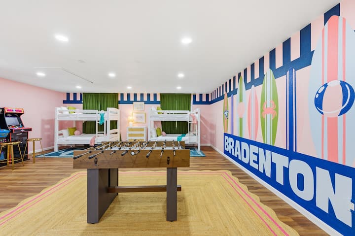 Dobro došli u svoj Bradenton Beach Club – gdje su sunce, prostor i dobre vibracije standard! Ovaj ljepotan s 6 spavaćih soba i 4,5 kupaonica može udobno ugostiti do 14 gostiju, što ga čini savršenim mjestom za obiteljska okupljanja, rođendanske izlete, putovanja s prijateljicama, vikende s prijateljima ili dugo očekivani odmor na koji su svi pozvani.