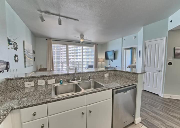 Zapanjujuća obnova najpoželjnijeg stana u visoko cijenjenom odmaralištu Shores of Panama u Panama City Beachu na Floridi. 1323 će vas impresionirati svim detaljima! Osjećajte se kao da ste u raju u našem luksuznom stanu s pogledom od milijun dolara od istoka do zapada! Jutarnja kava najbolja je uz golemi balkon! Ovaj stan ima rezervirano parkirno mjesto na 6. katu.