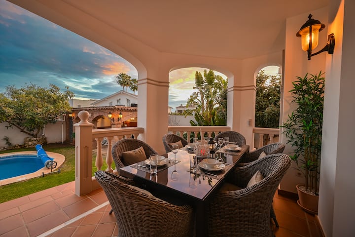 Ova vila sa šest spavaćih soba (395 m2), smještena na parceli od 700 m2 s bazenom s morskom vodom (9,5 m x 5 m) u regiji Marbella, nalazi se uz plažu u tradicionalnom španjolskom gradu San Pedro de Alcantara u mirnoj urbanizaciji. Na samo 400 metara od plaže i 600 metara od centra San Pedra, nalazi se na savršenoj lokaciji.