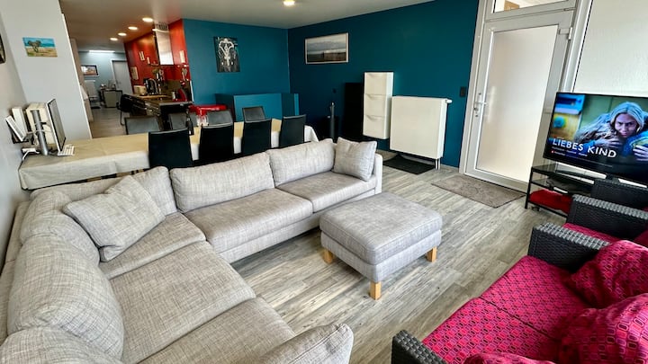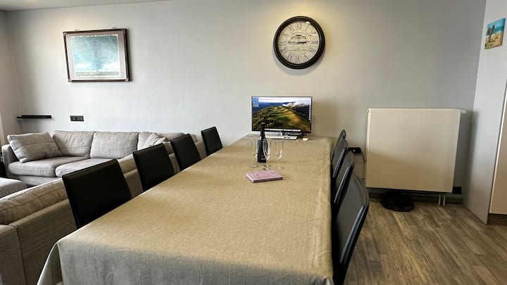 Otvorite veliki klizni prozor s ovog jedinstvenog nedavno potpuno renoviranog apartmana i nalazite se na šetalištu uz plažu. Apartman površine 175 m2 može primiti do 8 osoba. Kroz privatna stražnja vrata lako utovarite i istovarite automobil. Nema potrebe za neredom s premalenim liftom. Mala garaža prikladna je za bicikle, skutere, motocikl, opremu za surfanje, quad, ... Parkirajte automobil na našem privatnom parkingu (opcija).