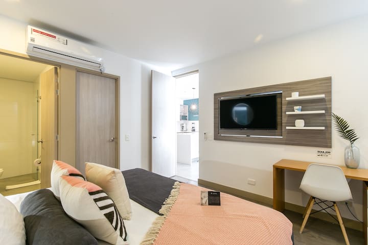 Dobro došli u Soul Lifestyle, jedinstvenu nekretninu na Airbnbu u Medellinu. Soul predstavlja luksuz i praktičnost u srcu Pobladoa u Medellinu. Ovi moderni apartmani su moderno namješteni, sa suvremenim kuhinjama i kupaonicama. Sve jedinice sadrže klima-uređaj i balkone u svakoj jedinici. Rooftop Sky Club with lounge, heated pool, jacuzzi, turkish steam bath, BBQ zone, full size gym, meeting rooms and chef's kitchen, Soul je također opremljen tehnološki naprednim značajkama kao što su topla voda na solarni pogon i brzi, svjetlovodni internet za sve apartmane.