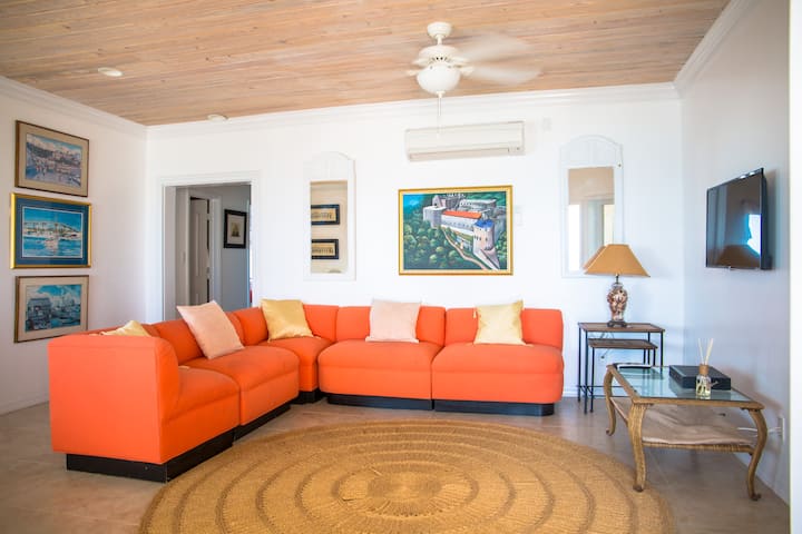 Dobro došli u Pomelo North, moderni kondominij s 2 spavaće sobe i 2 kupaonice na samoj obali u mirnom naselju Adelaide Village u Nassauu. Uživajte u prekrasnom pogledu na ocean, potpuno opremljenoj kuhinji, Smart TV-u s Netflixom, brzom Wi-Fi-ju i posebnom prostoru za rad.