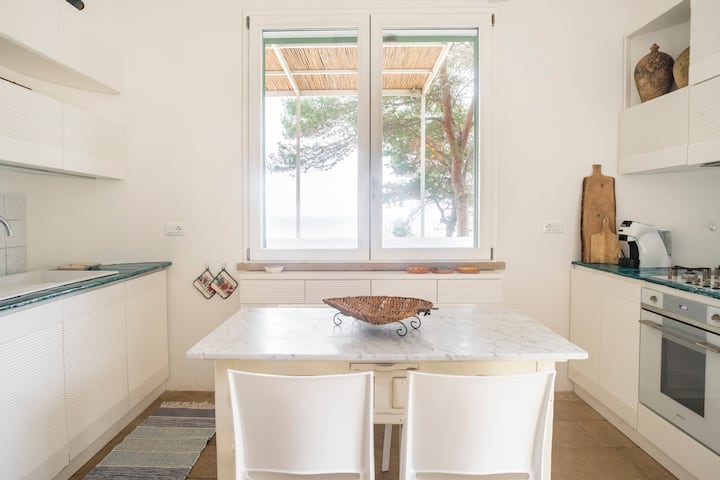 Vila je renovirana u pogledu ideje izvornog graditelja (mog oca) i lokalnih materijala i tradicije. Pogled na more s litice od 40 metara i ima privatni put do mora (nije baš ugodno s bebama, ali je izvedivo za odrasle)