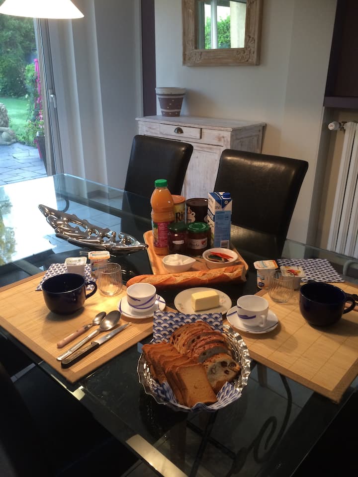 Živimo u kući od 230 m2 koja se nalazi u Abbevilleu. Ova kuća se sastoji od 6 spavaćih soba, uključujući 4 za iznajmljivanje na licu mjesta. 2 spavaće sobe opremljene su kupaonicom: romantična i vintage, a još dvije spavaće sobe imaju zajedničku kupaonicu. Živimo s našom posljednjom djevojkom od 16 godina, a na raspolaganju su vam i mali psi, mačka i prostrani ugodni vrt opremljeni životinjama. Sve su naše životinje društvene i bezopasne.