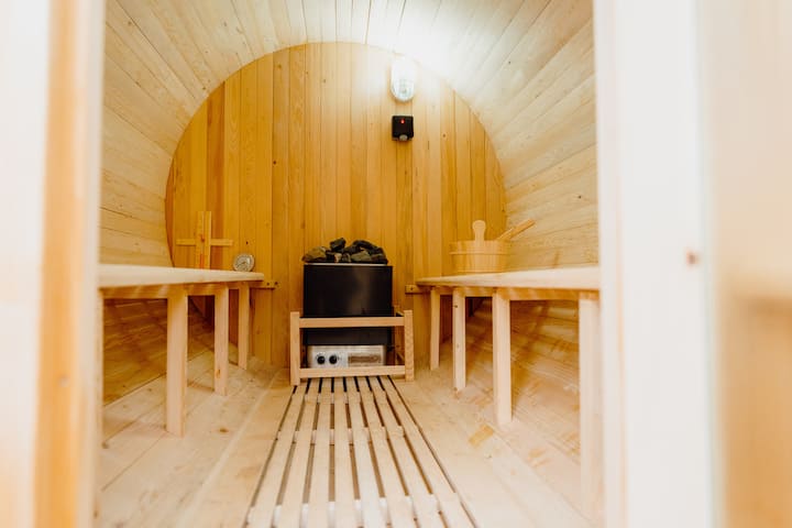 Udoban renovirani stan sa saunom u bačvi na otvorenom