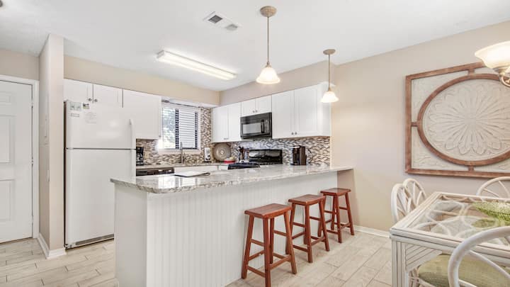 Doživite Panama City Beach u punom sjaju boravkom u šarmantnom smještaju 3BR 2Bath u raskošnom odmaralištu Gulf Highlands Beach udaljenom samo 5 minuta od pješčane plaže. Započnite dan na privatnoj terasi prije nego što istražite brojne atrakcije, znamenitosti, restorane i zabavu