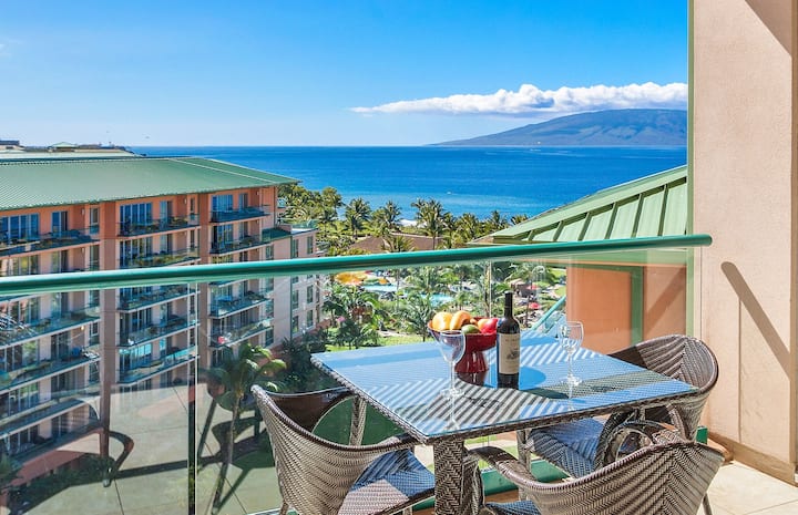 S pogledom na ocean na 9. katu koji gleda iza krila susjedne zgrade koja ometaju pogled s 8. kata i niže, otkriva se prostran pogled na Tihi ocean i susjedni otok Lanai na Mauiju dok se opuštate u ovom izvanrednom dvosobnom apartmanu u kutu.