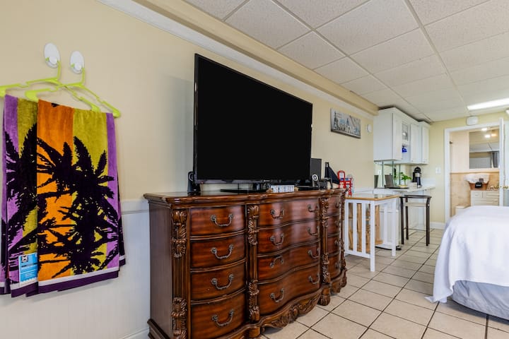 Pobjegnite u studio na plaži u Panama Cityju s privatnim pristupom plaži, bazenom uz ocean, terasama za zalazak sunca i luksuznom masažnom kadom. Uživajte u potpuno opremljenoj kuhinji, plišanom krevetu i restoranima prikladnim za pješačenje. Savršeno za parove ili putnike koji putuju sami. Uključen je besplatan parking. Potreban je povratni polog od 200 $.